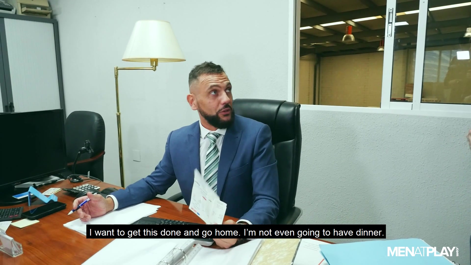 (Models Andrea Suarez, ViciousMen) Menatplay newcomers Andrea Suarez and ViciousMen work in the accounting department It is month-end and they both have to work late in order to finish on time Both gentlemen are tired from the long hours and decide to take a break Noticing Vicious’ stress, Andrea tries to get him to relax and enjoy the benefits of overtime pay Andrea massages Vicious’ shoulders and is initially rejected but Andrea insists He slowly goes down with his hands, touching Vicious’ chest, and reaches even further until finding a happy surprise that leads to an office flip-flop sex session!