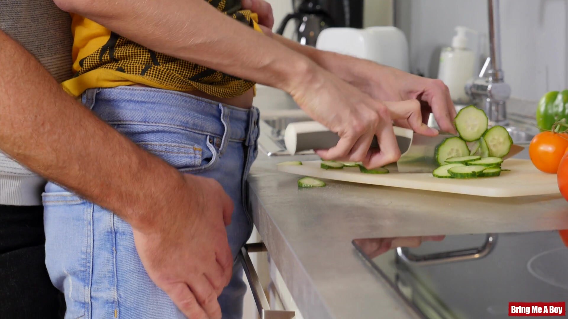 (Models Dave London, John Crawford) A good stepdad knows his role in raising a well-rounded child It only makes sense that I almost lost my shit when I saw John cutting a cucumber the wrong way I moved behind and showed him the correct way to use his knife, but standing behind John, made things shift around in my pants Luckily for us both, John didn’t need a knife to handle my dick His sweet hole would take care of it just fine John dropped to his knees in the kitchen before I took him into the living room and sucked his cock on the couch When I finally filled his hole with my meat, it felt warm, wet, and so damn good I fucked his ass for as long as I could before shooting my load on his face