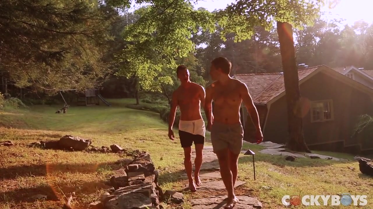 The last time we saw Tayte Hanson he was fucking Asher Hawk’s brains out and bringing out the power bottom in him But today is a new day It’s the day Tayte bottoms out for Damian Black and – wait for it – shoots three loads That’s right Tayte was so completely smitten by Damian’s beautiful eyes and soft lips that he couldn’t stop himself from shooting loads after loads all over the place It’s the end of summer and a few of the boys are hanging out at the house But Tayte and Damian seem to be lost in their own little world They’re either by the lake making out or in the pool sucking each other off or on the grass fucking like rabbits First they start messing around in the pool and it’s safe to say that after Damian fingered Tayte’s tight hole he knew exactly where "the spot" was After a few minutes Tayte could not wait anymore He needed Damian’s big cock inside of him and he needed it right then and there In the pool Fast forward a few positions later, and a massive load from Tayte, he is now laying on the grass and Damian is pounding his hole so good that Tayte shoots another load And then another one And while Tayte couldn’t stop shooting cum all over himself, Damian keeps fucking him until he shoots a massive load all over Tayte’s chest Needless to say, Tayte was completely covered in cum Now that’s the way to end a summer
