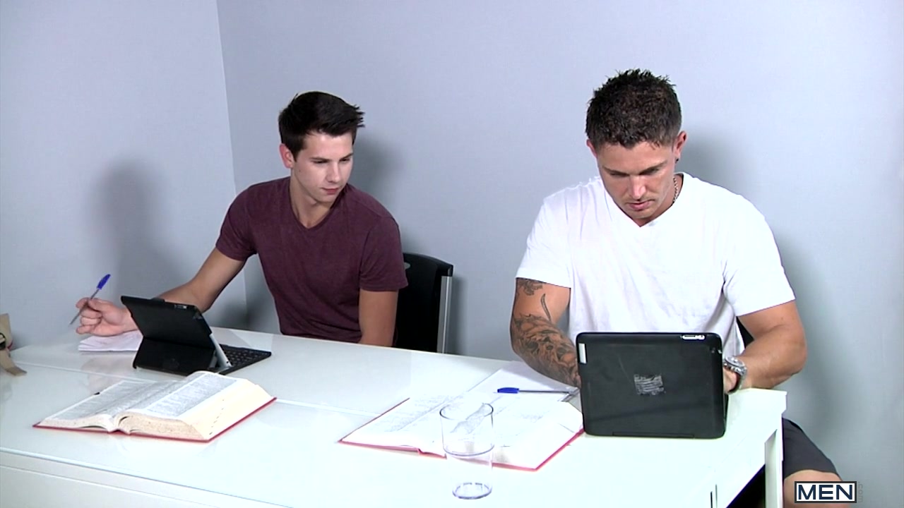 Models Sebastian Young & Chase Austin Chase Austin rides Sebastian Young‘s cock in “Do My Homework” by MENcom site Drill My Hole Sebastian should work ok his homework, but watching gay porn is more fun! His buddy (Chase) is sitting right next to him, writing an essay, but he can’t help but notice Sebastian stroking his fat cock Sebastian grabs Chase’s head, who wraps his lips around the rock hard dick and stars sucking it hard Chase then he offers tight pink hole for a ride…