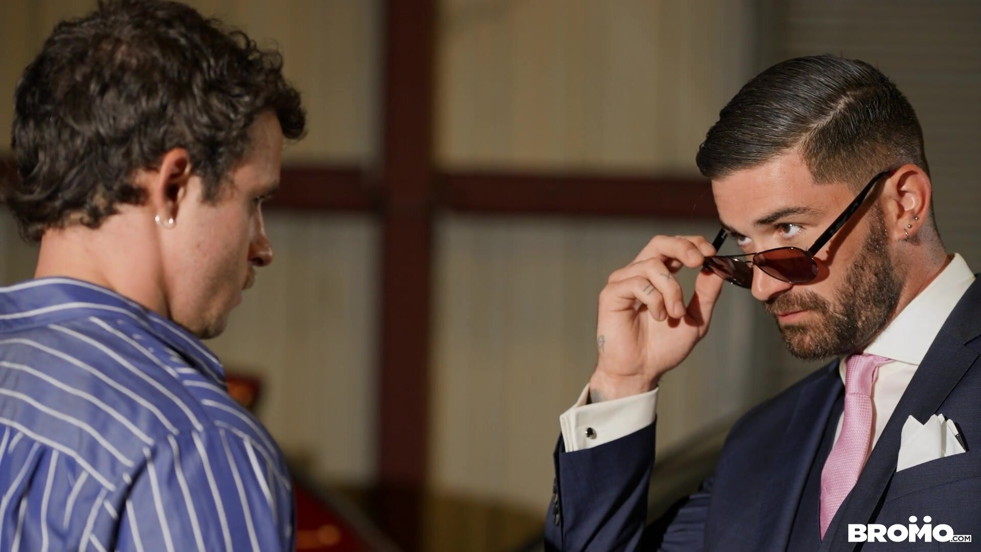 (Models Nate Grimes, Chris Damned) Nate Grimes has good reason to be nervous as he waits for mobster Chris Damned holding a briefcase full of cash The tattooed criminal immediately figures out something’s up, stripping Nate to find the wire taped to his chest, and running his hands all over the go-between’s body to find a stack of cash stuffed down the back of his pants! There’s more money missing, so Chris bends Nate over the table, leisurely removing his expensive suit as he rims the nervous bottom, then fists his hole Despite Nate’s best efforts, Chris finds the roll of cash stuffed up that ass, pulling it out and replacing it with his cock instead! Nate makes it up to Chris by sucking him and riding his dick reverse Then the mobster fucks the power bottom with a baseball bat as Nate jacks off till he cums, and Chris shows him who’s boss with a facial