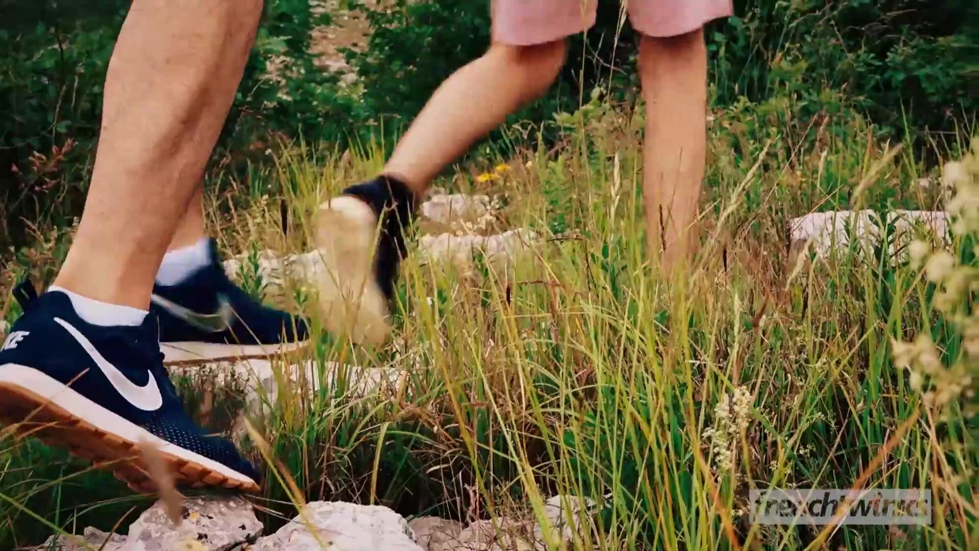 (Models Jules Laroche, Corentin Tessier, Mael Dumas) "Two twinks in the nature and a voyeur" On a beautiful summer day, Corentin Tessier and Maël Dumas hike in the mountains and settle in a clearing out of sight Lying in the grass, half naked, the two boys clink glasses and enjoy some seasonal fruit The tomato juice spurts on their bodies, the strawberries are covered with whipped cream and the cherries are pulled by the tail, it does not take more than the mischief of this 100% organic picnic to excite our couple of twinks who begins to kiss Corentin’s hand runs through Maël’s smooth body and quickly slides into his shorts to reveal a beautiful erection The couple will treat themselves to a little 69 in this idyllic setting, before Maël, excited at the highest point, heads for Corentin’s pretty ass The two twinks will fuck with passion and Maël gives all his energy to satisfy the insatiable Corentin by pounding him vigorously under the blazing sun Absorbed by their wild intercourse Maël and Corentin do not notice that a voyeur is watching them, hidden behind the bushes Corentin will finish his face dripping with hot sperm and it is certain that this bucolic experience will forever remain etched in his memory