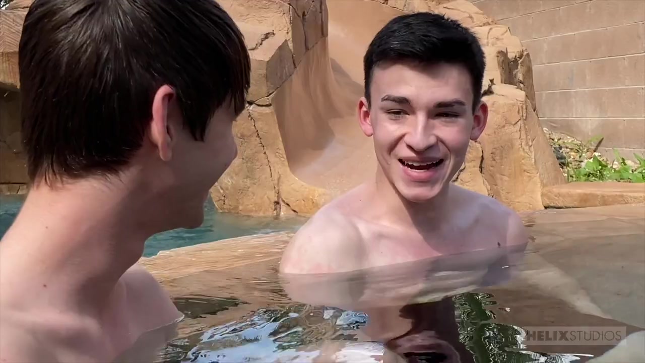 Worked up from their workout, Caleb Gray and Devin Holt hurry upstairs, shirtless, in shorts and schlong swingin’ sweats Horny as hell, the sweaty sex hounds start swapping spit before they even reach the bedroom, where the orgasmic make out gets aggressive with rock hard groin grabs Cock hungry Caleb is the first to fish out a big one from Devin’s schlong filled sweats before the newbie returns the naughty favor, making way for some mutual masturbation New dude Devin isn’t shy, dropping to his knees to show off his skills by working Caleb’s cock with a horny hand, and thirsty throat Appreciating the jock rocking gesture, Gray plants a kiss on Devin, then deep throats that thick uncut dick on the bed Warming up to the camera even more, first time fuck star Holt asks for an ass eating, which is just as much a treat for US as it is for him! The boy has the prettiest pink, nineteen year old hole we’ve seen in a while This does NOT go unnoticed by Gray, who grazes on the gorgeous gash like a boy eating beast! Once he’s opened the newbie up a bit, Gray offers Devin a ride on his girthy goods Holt squats, easing the big beast in, then promptly pouncing that perfect posterior up and down on that D, before getting a carnal craving for Caleb’s caboose Moving like a machine, Holt swiftly swerves off the D and into that sweet ass He multitasks, jacking Gray’s jock while hammering his hole, eliciting erotic sex sounds from the well worked, young stud Trading top duties once more, Devin takes another dicking on his back with that bulging bone of his rock hard, and looking ready to blow at any moment He takes the meaty matter into his own hands, heaving a hefty load that launches nearly to his neck Caleb uncocks, straddles Devin’s face with that delicious dick, then coats the only spot Holt didn’t cover, flooding his face and wide open mouth with a fresh batch of liquid fuck Hot as HELL!